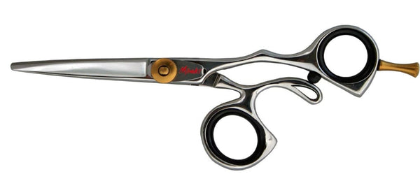 Miraki Super Offset neutral grip scissor with Sculptured Handles. Larger offset for comfort cutting. Click adjust tension screw. 5.25" size