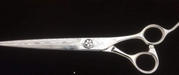 OHKA Damascus NHD Highly Tempered and folded to promote a distinctive one of a kind Damascus Grain these Japanese Hand Made scissors. A blend of Cemintitie and Pearlite combined with traditional damascus forging giving a wonderful matt metallic grain effect. Highest grade possible. Hand Made Slicer blades - 5.5 6 6.5 or 7 “